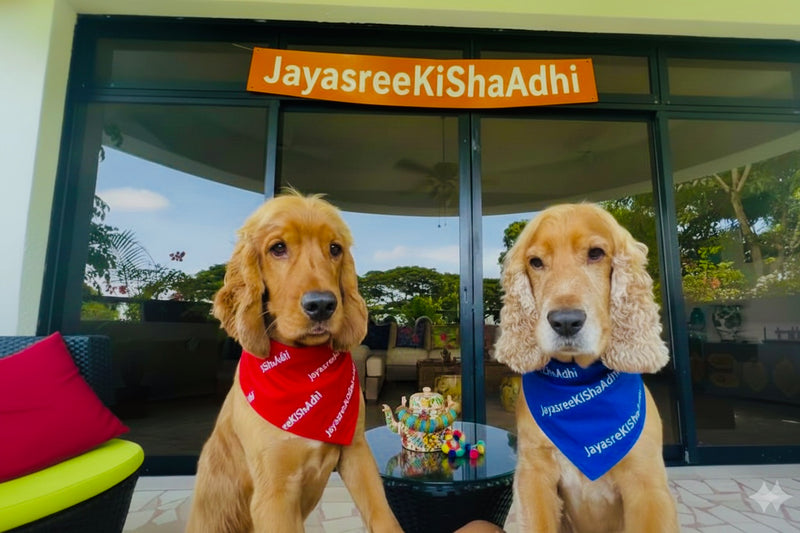 Our sister, Jayasree is getting married! We're not allowed to be there (something about us eating the cake...), but we're sending a lifetime of tail wags and snuggles to the happy couple and everyone else! Hurry home so we can snuggle our new brother-in-law!